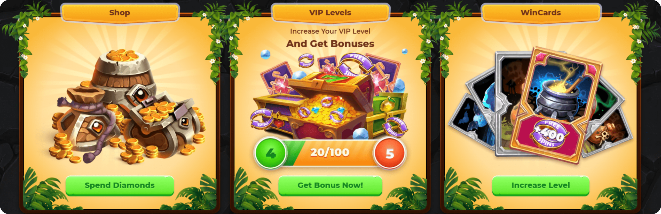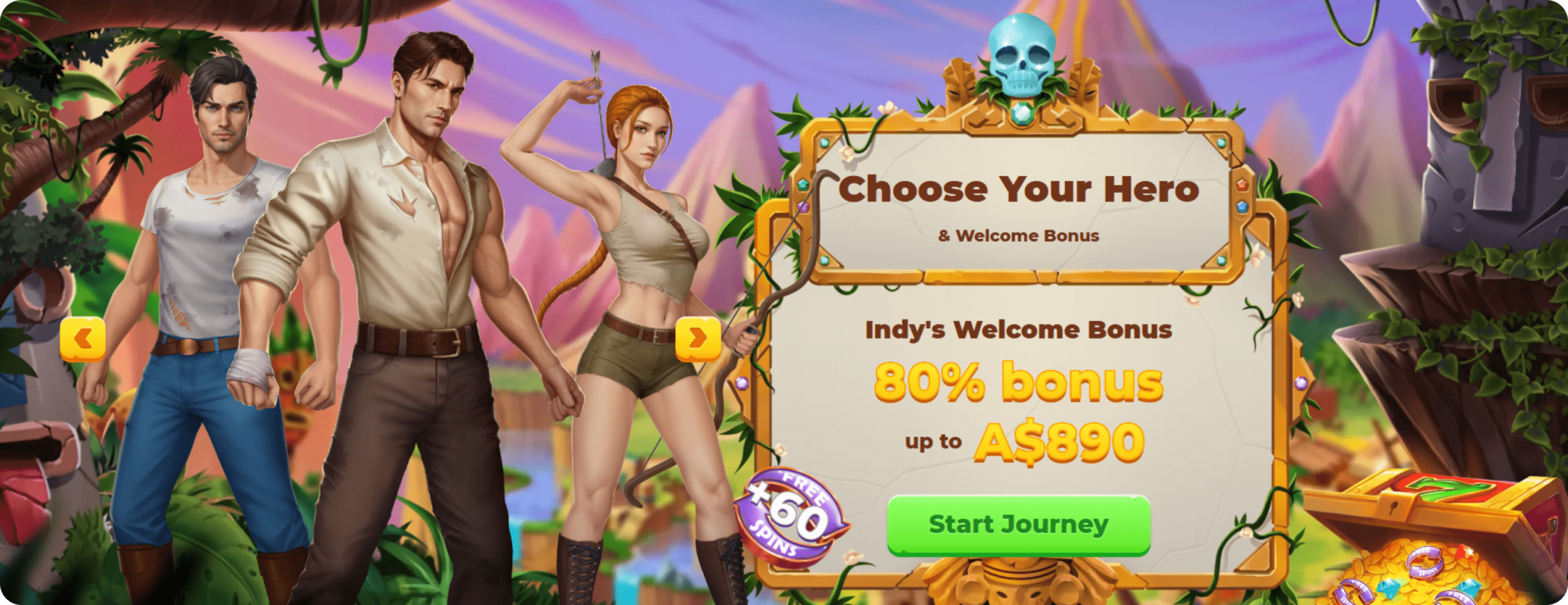 New players typically pick one of three themed offers: